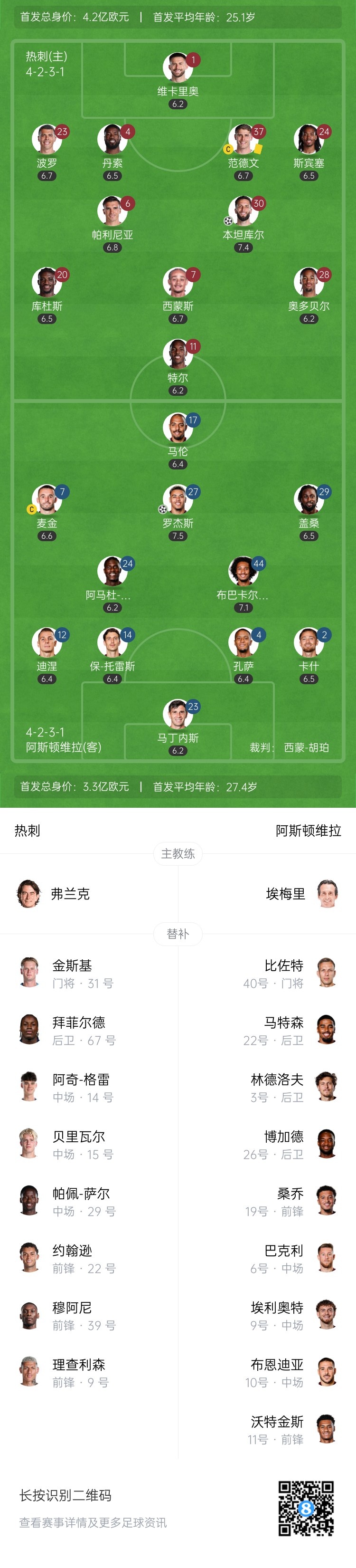 第37分钟,罗杰斯禁区前沿接球,右脚爆抽寰宇波破门!维拉1-1扳平热刺↓