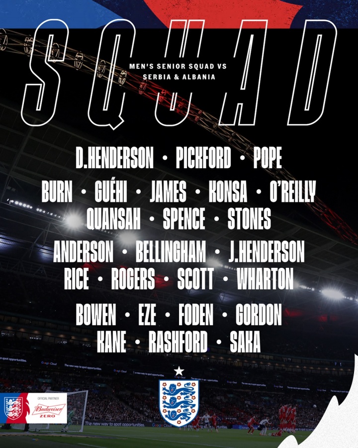 英格兰队公布最新名单备战下周的全国杯外围赛,他们是欧洲区独一还是提前出线的球队,6战全胜一球不丢。曼城的少壮奥赖利和伯恩茅斯的后腰斯科特初度入选。三狮军团东谈主员储备最丰富的是前腰位置,再行入选的贝林厄姆与福登将与罗杰斯争夺首发契机,不异擅长踢这个位置的帕尔默现在在养伤。