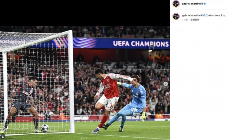赛后,马丁内利更新社媒晒配文照庆祝告捷:两战两胜🤙🏼