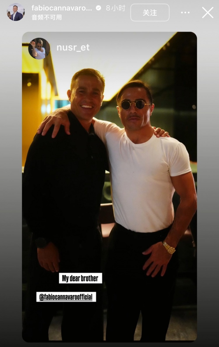 北京时间今天凌晨,卡纳瓦罗更新社媒,转发了网红“撒盐哥”社媒发出的两东说念主合照,前者称号卡纳瓦罗为“好昆季”。像片中卡纳瓦罗依旧展现出象征性的笑颜,看上去方法很好。