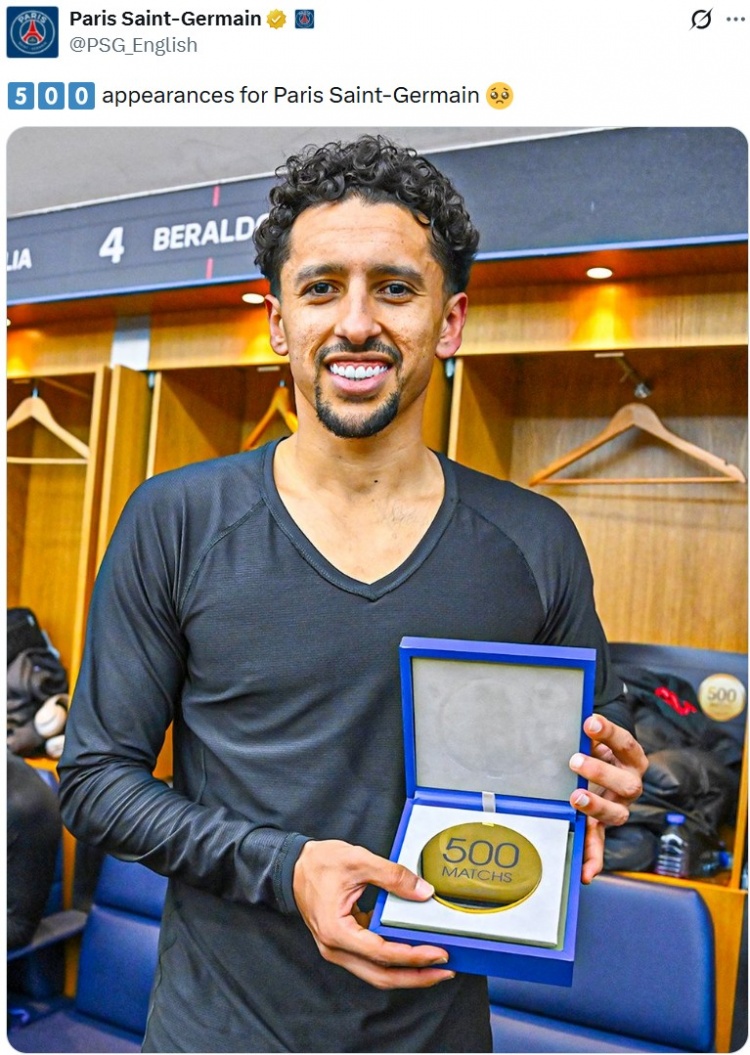 本场比赛亦然马尔基尼奥斯第500次为巴黎出场里程碑之战,赛后他也获颁巴黎500次出场挂牵奖章。