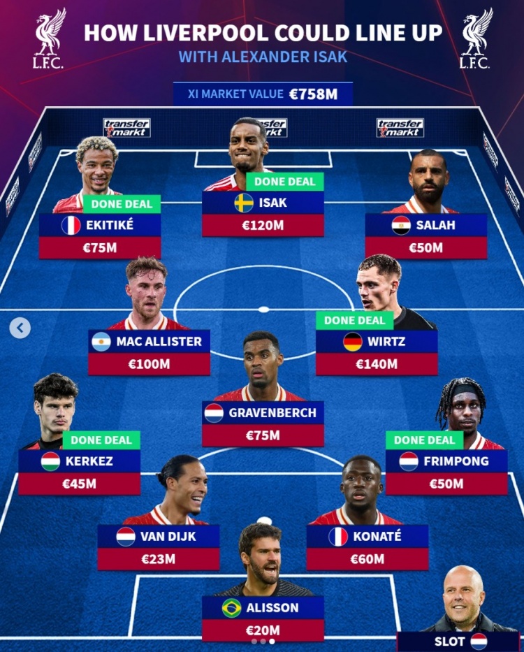 9月2日讯 利物浦压哨签下伊萨克为今夏落拓引援画上句号,《转会商场》也展望了赤军新赛季主力声势。