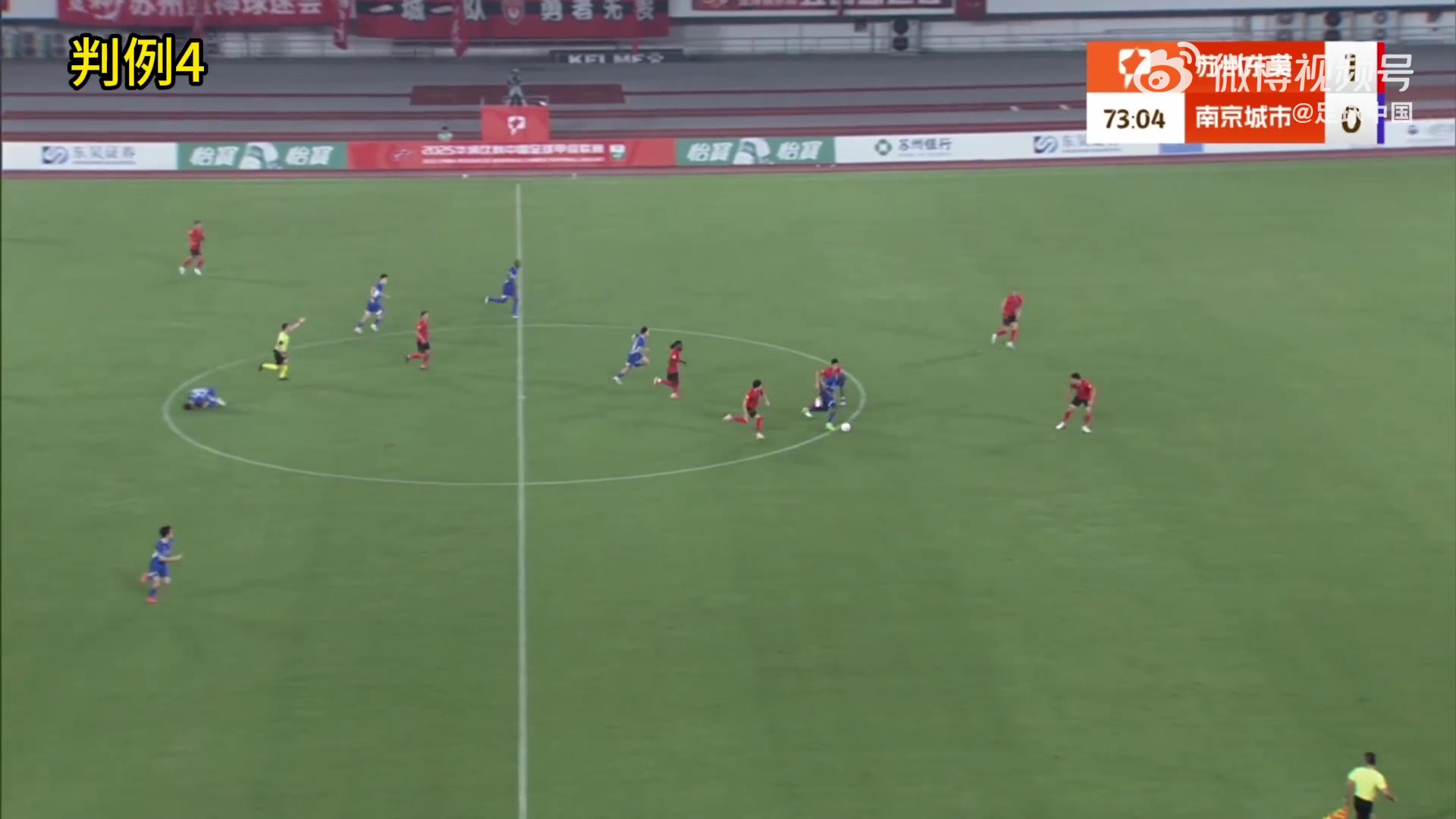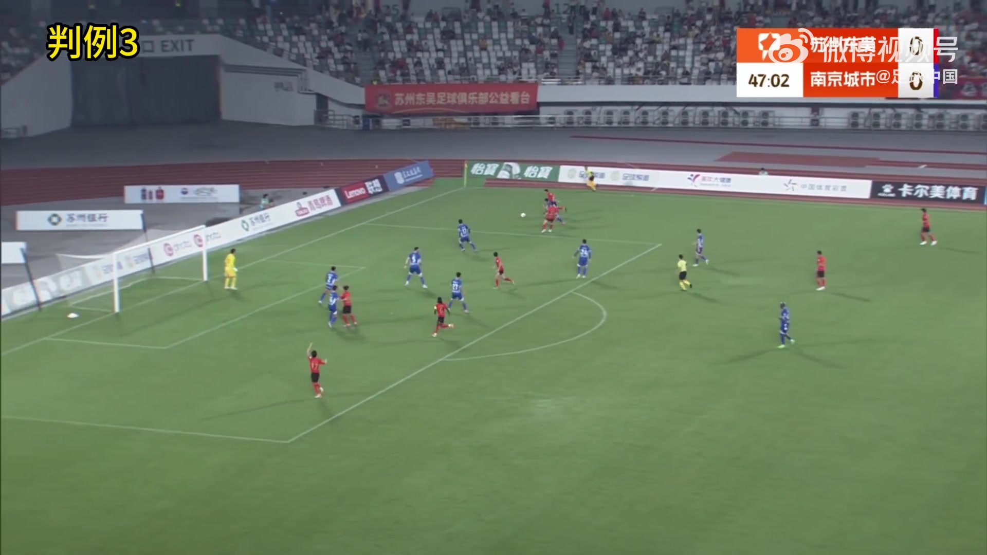 判例三:中甲联赛第24轮,苏州东吴vs南京城市。比赛第48分钟,苏州东吴6号队员头球射门,南京城市守门员将球扑出,助理评判员暗意球的合座照旧卓绝球门线,评判员判苏州东吴队进球得分。