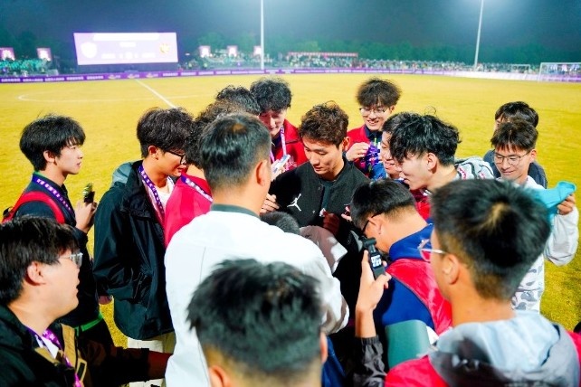 比赛当晚,合肥骆岗公园东谈主声欢叫、热气腾腾。在比赛中场休息时辰,安徽蚌埠籍足球畅通员、现役国脚韦世豪亲临现场为赛事助阵,并与合肥、蚌埠、安徽青训三支队列的队长交换球衣。