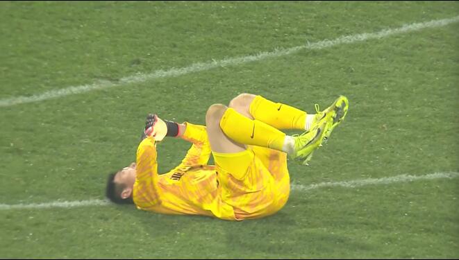 10月25日讯 亚泰补时先丢一球后,门将王智峰拖延时刻染黄,随后他暗意抽筋被裁判劝诫!