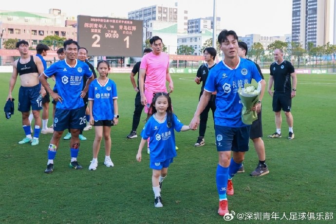 37岁的韩光徽一经晓示退役,深圳后生东说念主足球俱乐部在社媒晒出了本赛季中甲末轮主场对阵青岛红狮的比赛像片并配文祝愿写说念: