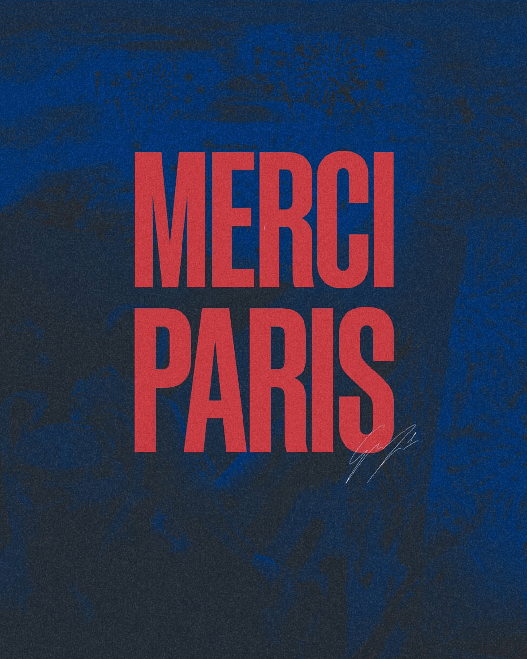 配图展示了我方在巴黎技艺捧起的各样奖杯,配文:“感谢你的一切,巴黎”。