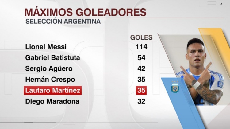 10月15日讯 劳塔罗在阿根廷队大捷波多黎各的友谊赛中梅开二度,凭据ESPN统计,劳塔罗阿根廷队进球数追平克雷斯波,并列队史第四。